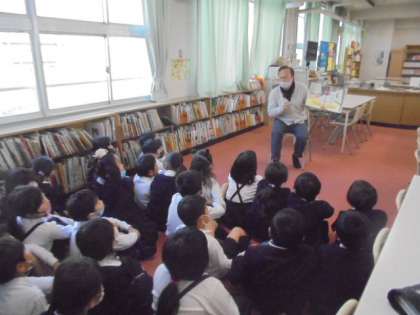 学校図書館補助員の小前先生が、1年生に絵本の読み聞かせをしてくださっています。いつもありがとうございます。