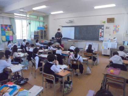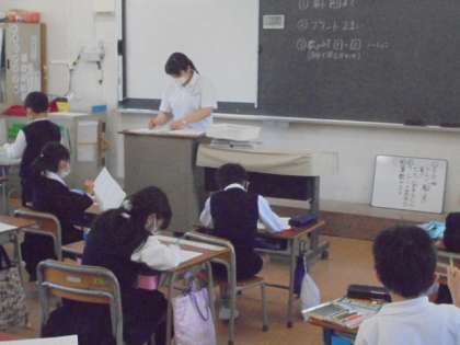 (下)九九の表ときまり 先生がていねいに答え合わせをしています。