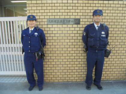 浪速警察署の松崎さん(右)と山田さん(左)がお越しくださり、全校放送朝会で子どもたちに「いのちと安全を守るための5つのやくそく」についてお話いただきました。子どもたちを見守ってくださり、いつもありがとうございます。