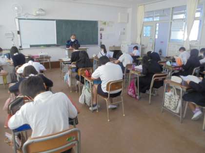(上)国語テストをしています。