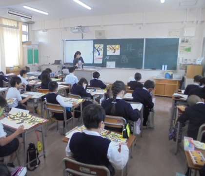 (下)図画工作 国語の教科書「モチモチの木」の絵を描いています。