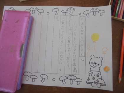 (上)くばり係さんへのありがとうの手紙です。