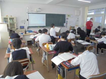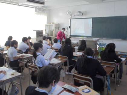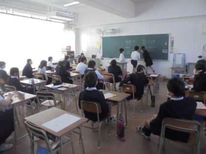 (下)理科のふりかえりプリントをしています。