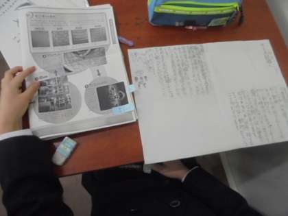 (下)算数プリント「小数のたし算とひき算」の答え合わせ。