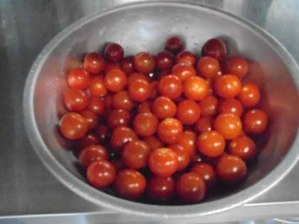 プチトマトのヘタは、給食調理員の皆さんがひとつずつ手で取り除けてくださっています。およそ1,500個も!ありがとうございます!