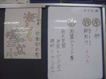 (上)明日の持ち物など