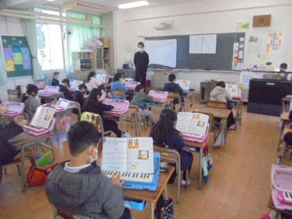 (中)小ぎつね 鍵盤ハーモニカの指づかいを練習中