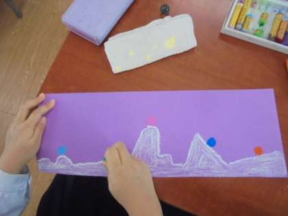 図画工作「ビー玉コロコロ」パスを使って描いています。