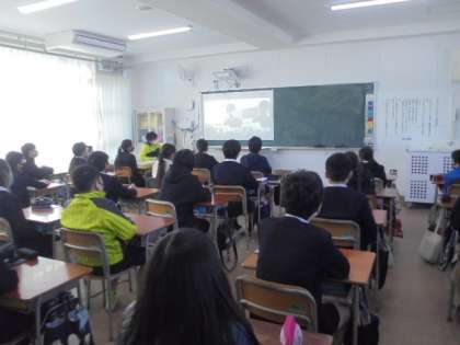 大阪市立難波中学校と栄小学校とで、3校オンライン交流をしています。