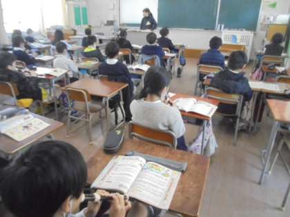 (下)音楽「パフ」「エーデルワイス」リコーダーの指づかいを練習中。
