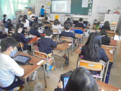 (上)しょしゃで、運筆の上達のため、水書筆を使っています。