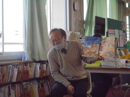 学校図書館補助員の小前先生が、1年生に絵本「大阪うまいもんのうた」を読み聞かせてくださっています。ありがとうございます!