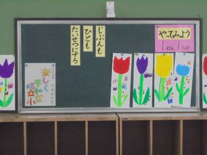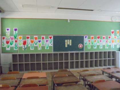 1年生の教室に、チューリップの花がたくさん咲いています!