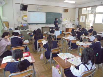 (中)図書室で読んでいました。「ちゃめひめとおしろのおばけ」