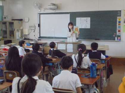 今朝は、高学年の子どもたちに絵本の読み聞かせをしていただきました。