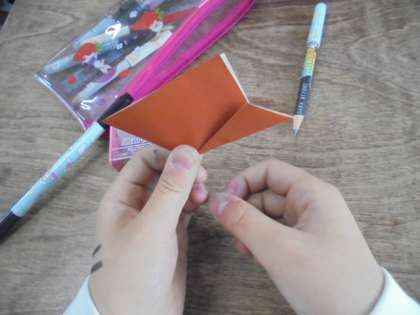 折り紙で、かたつむりを作っています。