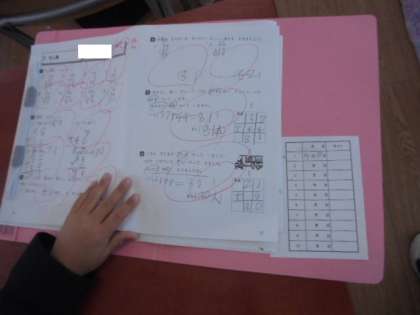 (下)プリントをファイルに綴じています