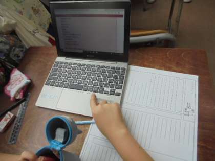(上)パソコンを使って大阪府について調べています。