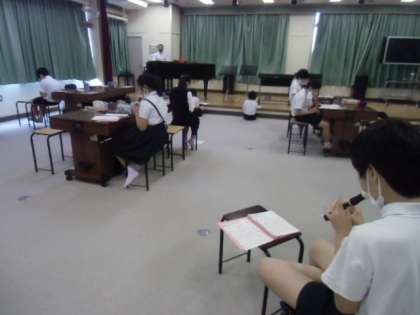 (上)音楽「メヌエット」リコーダーの指使いを練習中