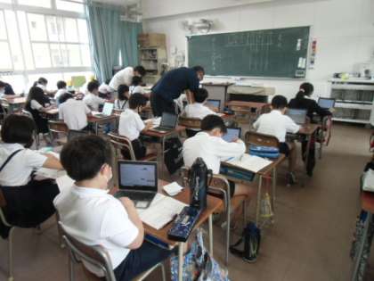 (上)パソコンを使って、ことばの意味調べをしています。
