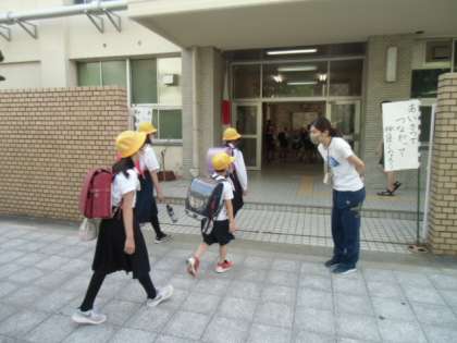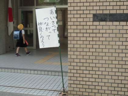 児童会代表委員の子どもÝたちが、あいさつの旗を作ってくれました。