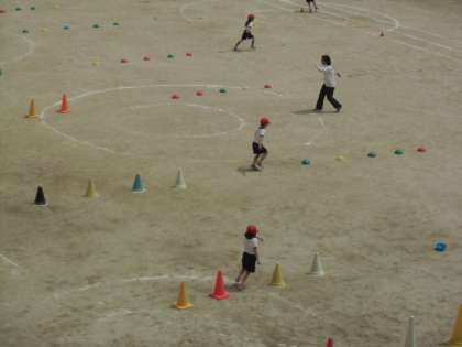(上)運動場で忍者修行「ニン!」