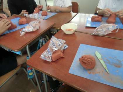 シーサーを作っています。たった2時間で、このできばえ!!