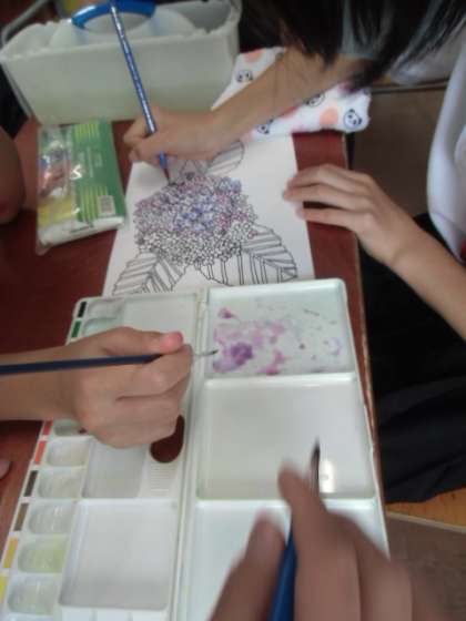 (上)あじさいを描いています