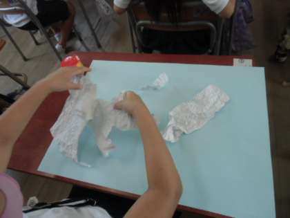 ずがこうさく です。ちぎりえを しています。