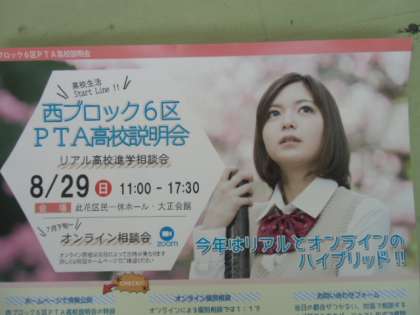 恒例のPTA高校説明会の案内です。今年度は、オンラインと対面の両方です。詳しくは、学校に貼っているポスターをご覧ください。
