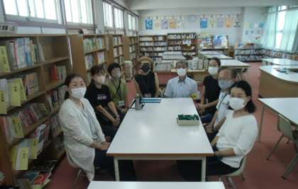 読み聞かせの会の後、打合せをしています。リードさんの皆様、