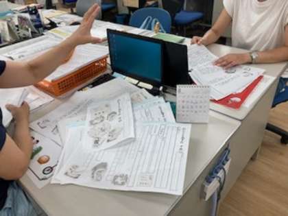 (中)4年生の先生方が、授業の打合せ中