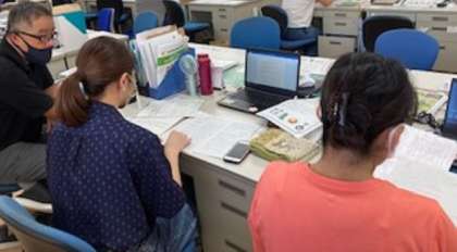 (下)6年生の先生が、教育課程のオンライン研修中