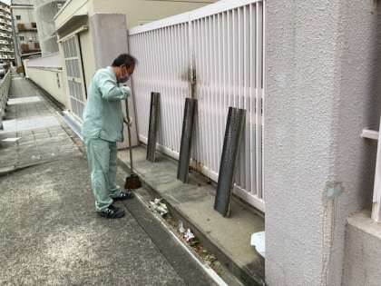 今朝8時前から、管理作業員の日野さんが、学校の周辺を清掃してくださっています。ありがとうございます!