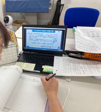 今朝も、先生方がオンライン研修や授業準備などに励んでいます。