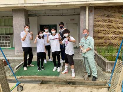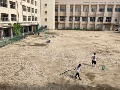 今朝、管理作業員の日野さんと体育部の先生方が中心になって、子どもたちが使いやすいように、運動場を整地してくださっています。