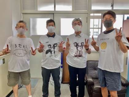 投稿者(顔出し自己規制)、井元教務主任、谷山教頭、大島人権・同和教育主担です。