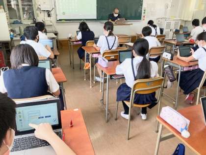 (上)1組 パソコンで、デジタルドリル教材を試しています。