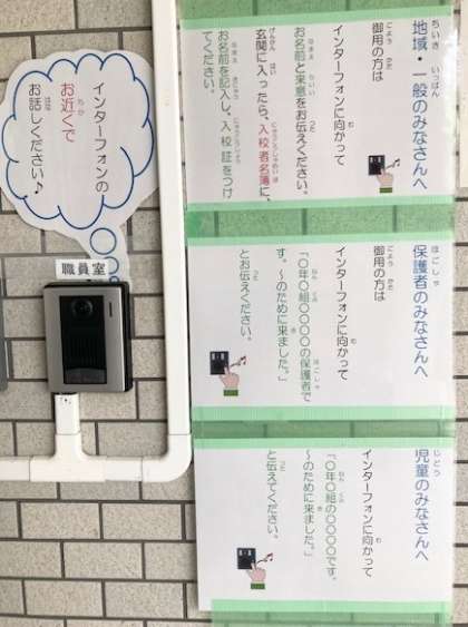 ご来校の際、インターフォン応答へのご協力ありがとうございます。