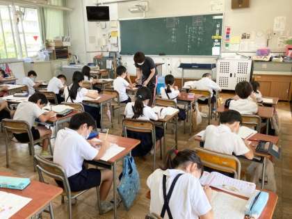 (中)2組 算数 水のかさのたんい プリント答え合わせ