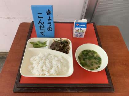 プルコギ、トック、えだまめ、ごはん、牛乳です。