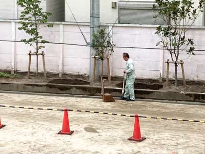 管理作業員の日野さんが、花の種を植えています。