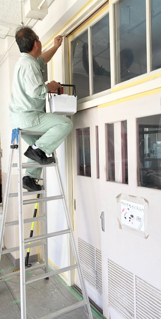 管理作業員の日野さんが、塗装作業をしてくださっています。