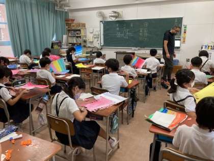 (上)1組 図画工作 鳥を作っています。できあがりが楽しみです!