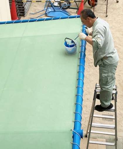 管理作業員の日野さん 塗装の仕上げです