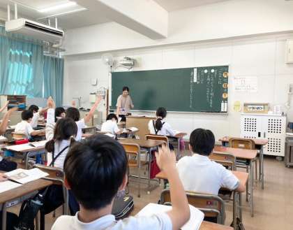 今日は、4年2組末永先生が他の先生方に授業を公開しました。