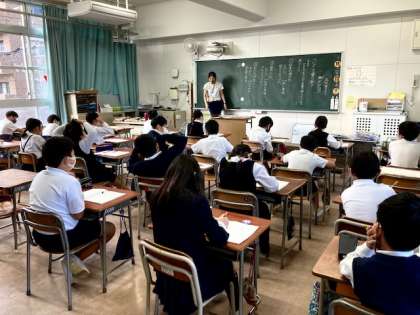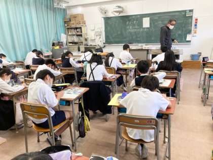 (上・中)1組 昨日訪問した「津波・高潮ステーション」新聞を作成中