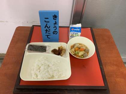 みそカツ、じゃがいもと野菜の煮もの、焼きのり、ごはん、牛乳 です。