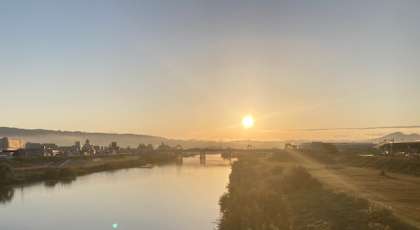 毎日通る高野大橋(大和川)から見た朝日と生駒山があまりにも美しくて、思わずシャッターを切りました。(今朝の午前6時20分ごろ)