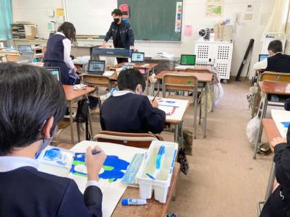 (下)2組 図画工作 難波八阪神社の絵が完成間近です